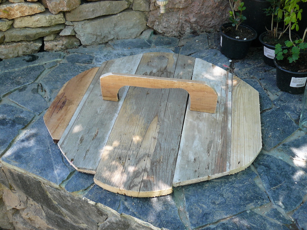 Направих този капак, защото има череша и орех над чешмата на вилата и непрекъснато я пълнят с листа,шума и какво ли още не. Ето какво се получи от няколко стари дъски и винтове.
