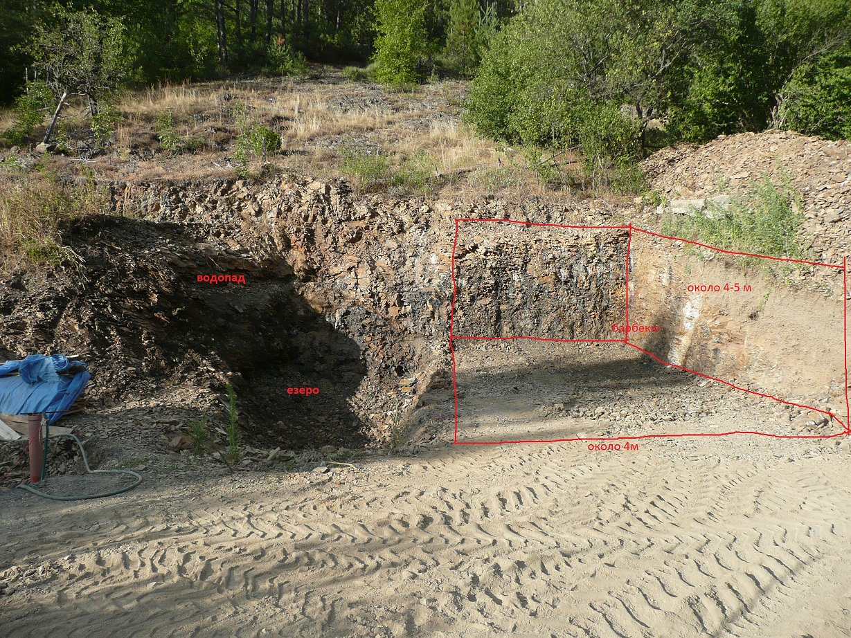 и езерце, място издалбано в масивна скала. Пред него ще има ливада около 300м3
