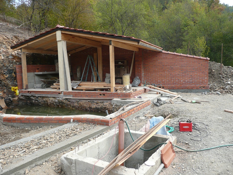 Цел: място за пиене ядене за 12 души , почивка на сянка , съзерцание на водопада и езерце .
