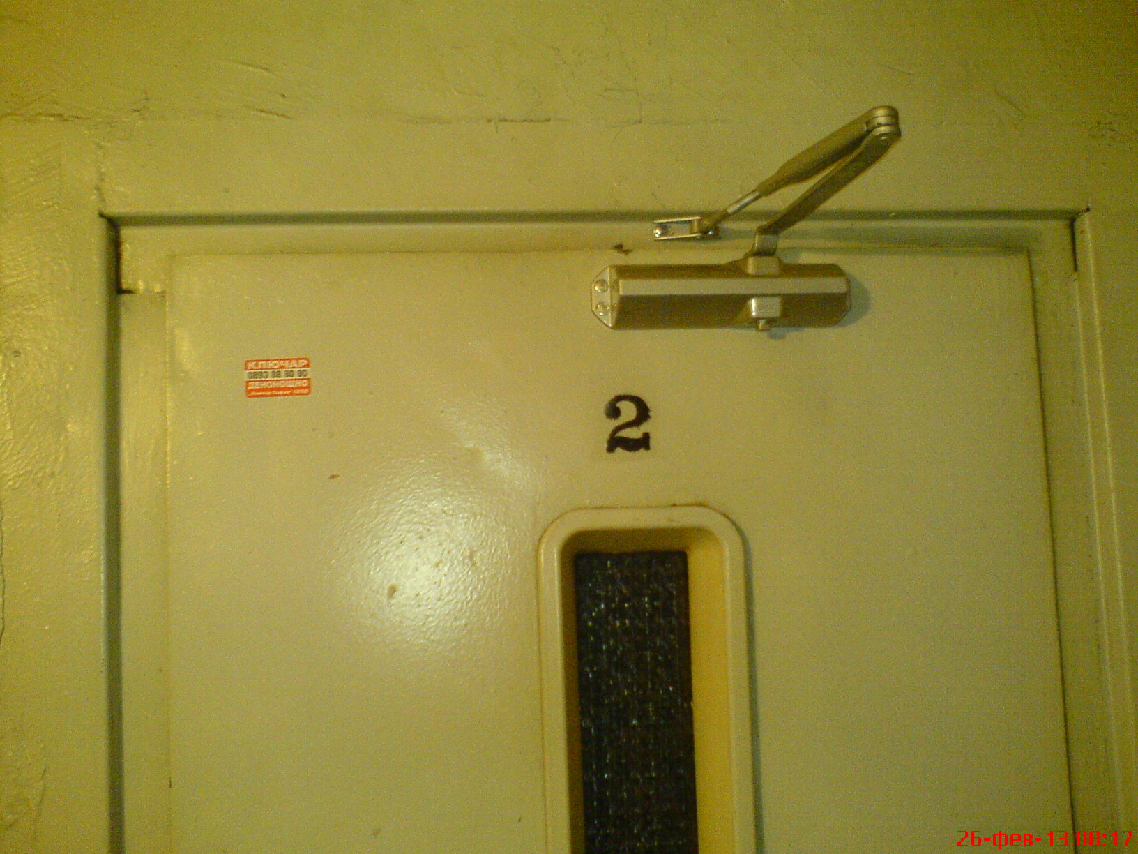А защо не разхлабиш оригиналната пружина на вратата? При нас са от листова стомана и се усукват. Просто отпусни някой оборот и вратата няма да се засилва толкоз. Обаче ако някой внимателен гражданин я придържа по време на затваряне, пружината не преотдолява демпферния механизъм (ролката) и вратата остава незатворена, а асансьора не може да се ползва от другите етажи.
