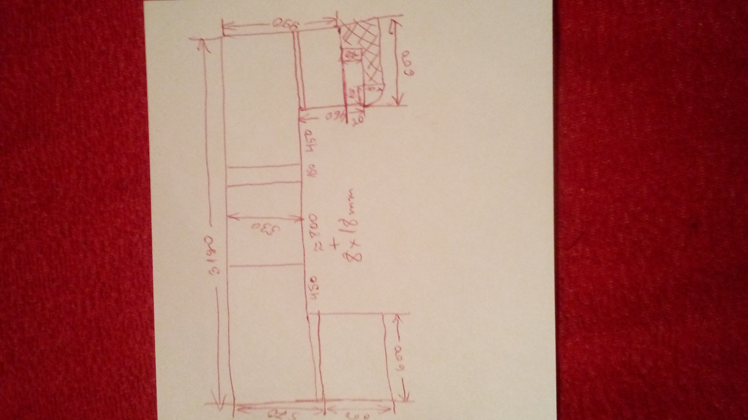 Шкафът е глух и леко ъглов, и не зная как най-добре би било да се направи от страната на пантите. Прикачам скица на това какво трябва да е, но начинът на захващане как да бъде?