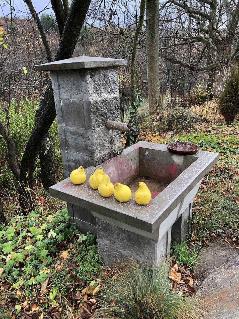 Ето една идея за дворна чешма от коминни тела.