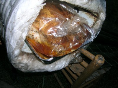 Резултата се оказа много добър: Получи се чудесна соларна фурничка, която е напълно безопасна, тъй като няма открити нагрети части и готви всичко на ниска температура. Засякох 130 градуса на празна фурна и 88 на пълна. Това позволява тавичката да се пъхне сутринта и вечерта в 21 часа да се извади гореща Експериментите с рагу и ориз за кучето бяха много успешни и преминахме към по сложни изпитания. Зрял боб реколта 2010г. Беше сварен чуддесно без да е преварен, а резултатите със джолан и цяло пиле надминаха очакванията. По крехко сготвено не съм опитвал: