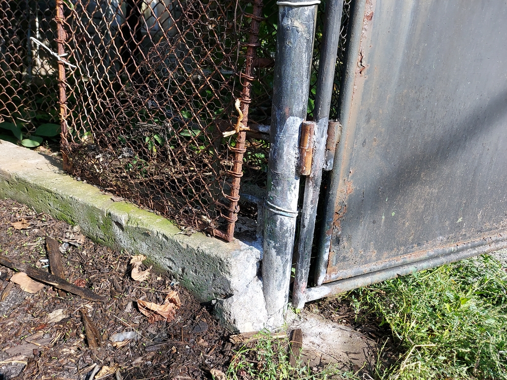 Искам да си направя нова врата на двора пред гаража, че старата едно вече ръждяса много, а и хич не ми харесва, нефелна е, събрана е както дойде от каквото е имало. Като се загледах обаче имам и по-голям проблем. Както се вижда на снимките лявата тръба си е идеално права и лявото крило седи точно хоризонтално, обаче дясната е потънала и се е наклонила настрани и съответно крилото на нея се разминава с другото и седи накриво. Сега ако просто заваря нови панти и сложа нова врата и тя ще застане по същия начин.
