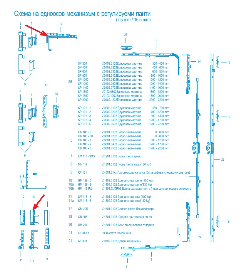 Твоята панта вероятно е 10а- махаш капачката и с ключ шестостен 4( на сигения е такъв, вероятно и вьорне е такъв) регулираш вратата нагоре-надолу. На рамото на горната панта(19) също има винт с който регулираш вратата наляво-надясно. Вратата трябва да е отворена нацяло за да стигнеш до винта. Ние работим основно със Сигения, но всички механизми са на един принцип, може винтовете да са за различни ключове- шестостени, еврейски, торксове разни и т.н. :)