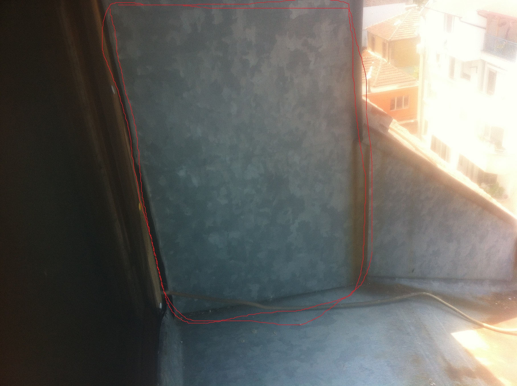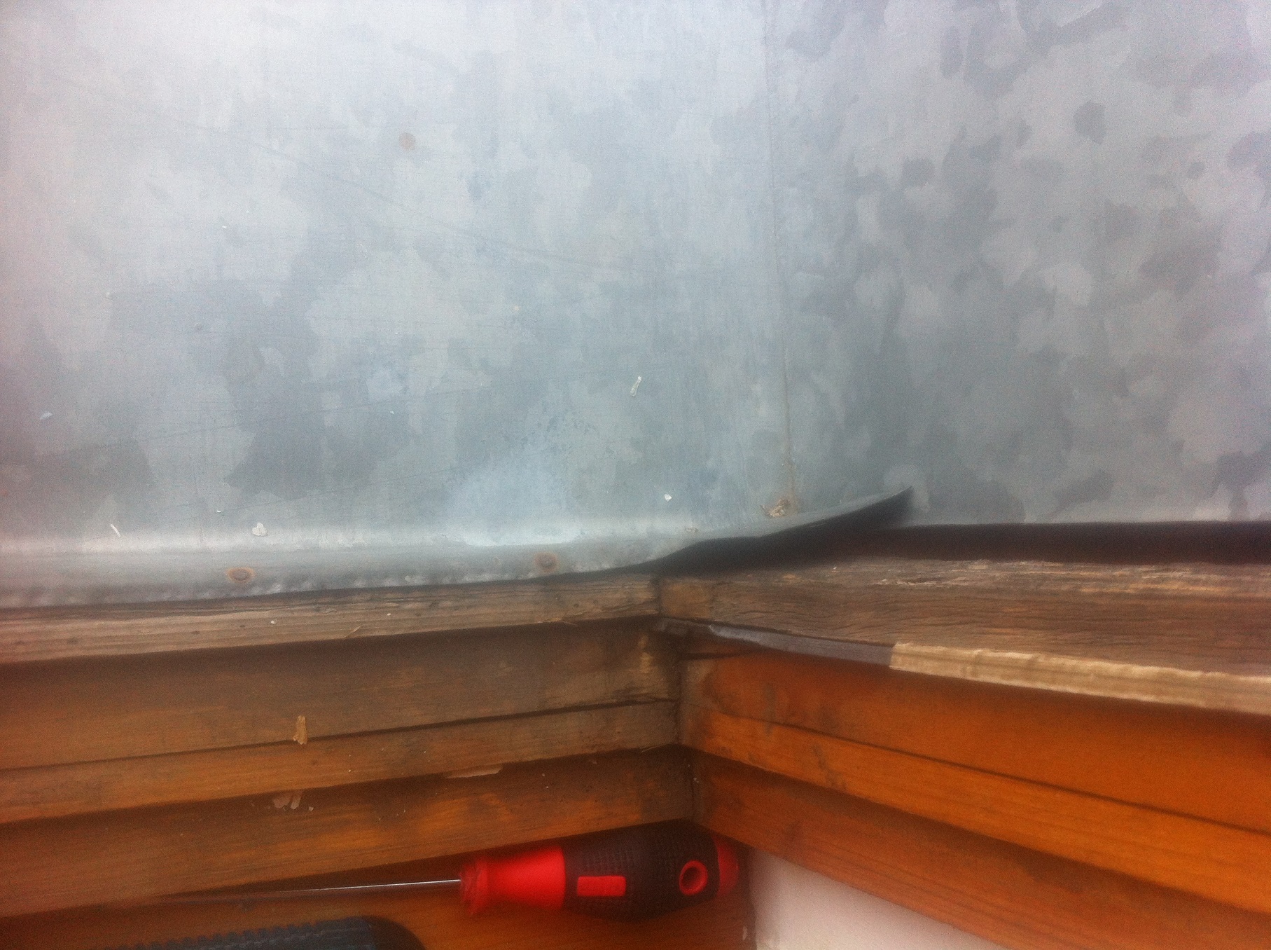 . Моля за съвет какъв гъвкав материал мога да използвам за от вътре преди да се пристъпи към шпакловане. За отвън си мисля да махна ламарината оградена в червено на снимката, санирам със същия материал като от вътре, като добре попълня с мазила/лепило около дограмата, да поставя голям долен перваз и след това да измажа със силиконова мазилка. Това правилен подход ли е? Прилагам малко снимки за да добиете представа.