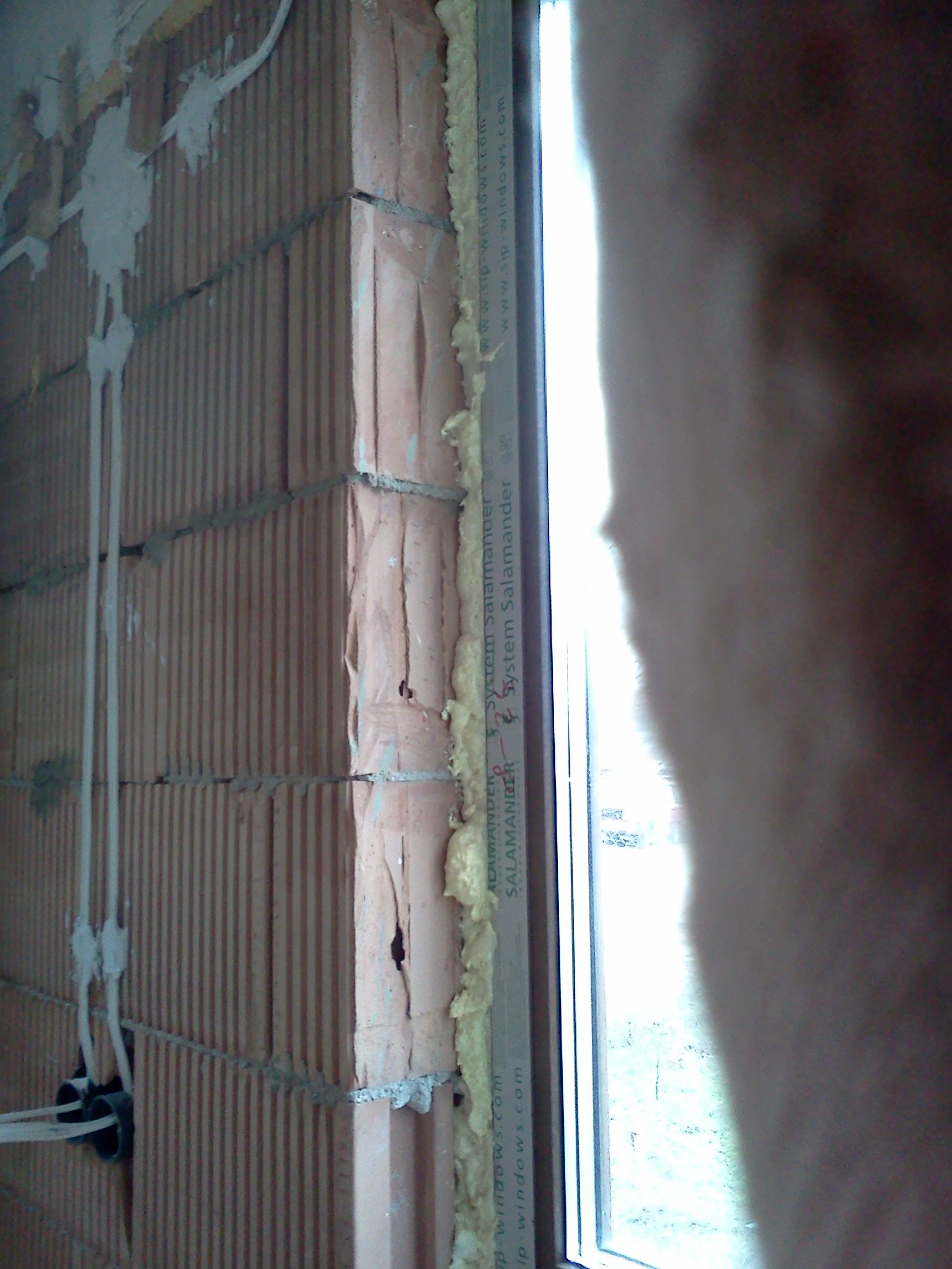 Ето каква е ситуацията при мен. Ще се обръща масово с 4 см XPS. Отгоре на всички прозорци са греди, така че там е ясно, лепило за топлоизолации на гребен и лепя "вафлите". Почва се с хоризонталната част както разбрах. Отстрани обаче виждам проблем, по някои вертикали тухлите са сравнително подравнени, и там би станало с някаква комбинация от гребен и топки, други обаче са си с вдлъбнатините ( Поротерм) и на гребен не става, а да запълня всичко с лепило, сигурно ще е отиде много. Ето 2 снимки: Дали да лепя с пяна по неравните стени или първо да се подравнят с нещо ( какво) и после на гребен с лепило?