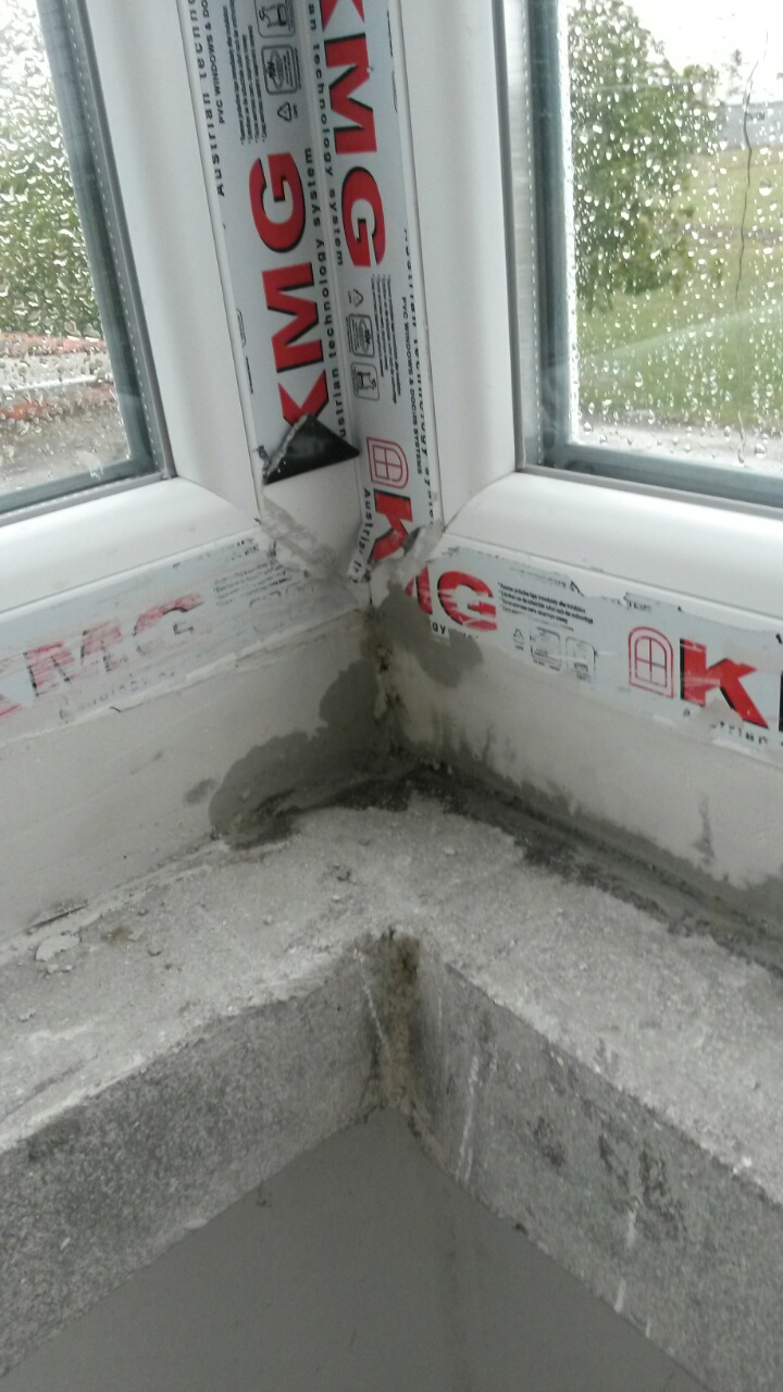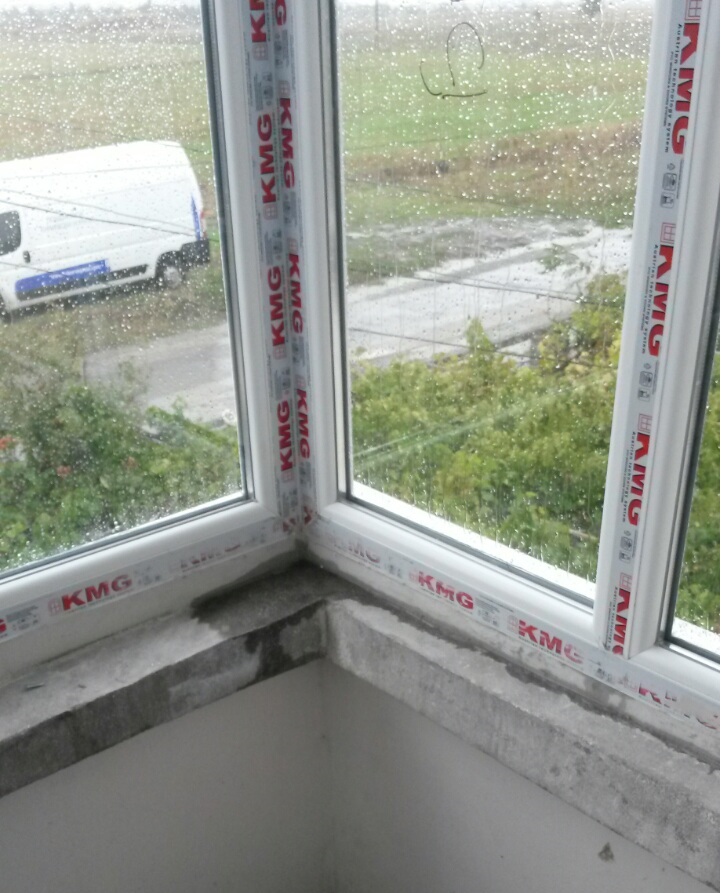 Добре че заваля да правя каквото и да е било. Понеже терасата беше крива - разстоянието между парапета и козирката в единия край беше 1.90 а в другия 1.97 се наложи дограмата да се съобрази с по-малкия размер като самата дограма сложиха върху едни метални шайби. А свободното място запълних с газобетонни блокчета. Отвън и отвътре минах с лепило и след това с циментова шпакловка. Така се получи разстояние между парапета и самата дограма (вижда се на снимките). Снимките 1 и 2 са отвътре, 3 е отвън. Само че отвън има ламарина, която обаче е във въздуха. И явно не върши никаква работа. Извиках дограмаджиите да видят. Казаха ми че имало 2 варианта да се свали ламарината и да се сложат плочки и пак да се монтира ламарината (подпрозоръчна дъска или там каквото се води) или да се поръча ламарина която да скрива добре всичко - да слиза плътно до перваза и после да прави Г образната чупка.