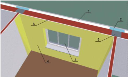 Втората стъпка е изпълнение на усилена топлоизолация в района на “топлинните мостове” в ограждащата конструкция. Такива в наши условия се явяват стоманобетонните греди и колони по фасадата (5). Ако на тези райони не се обърне специално внимание, топлинните загуби през тях са драстични и водят до множество неприятни ятления. Усилената топлоизолация може да се изпълни по два начина: