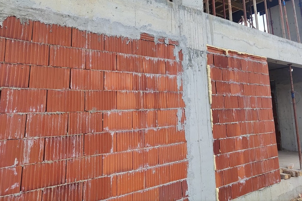 Притеснява ме неравната повърхност на тухлите и фугите, която може да повлияе на залепването на EPS плоскостите. Затова обмислям да измажа само тухлената част предварително.