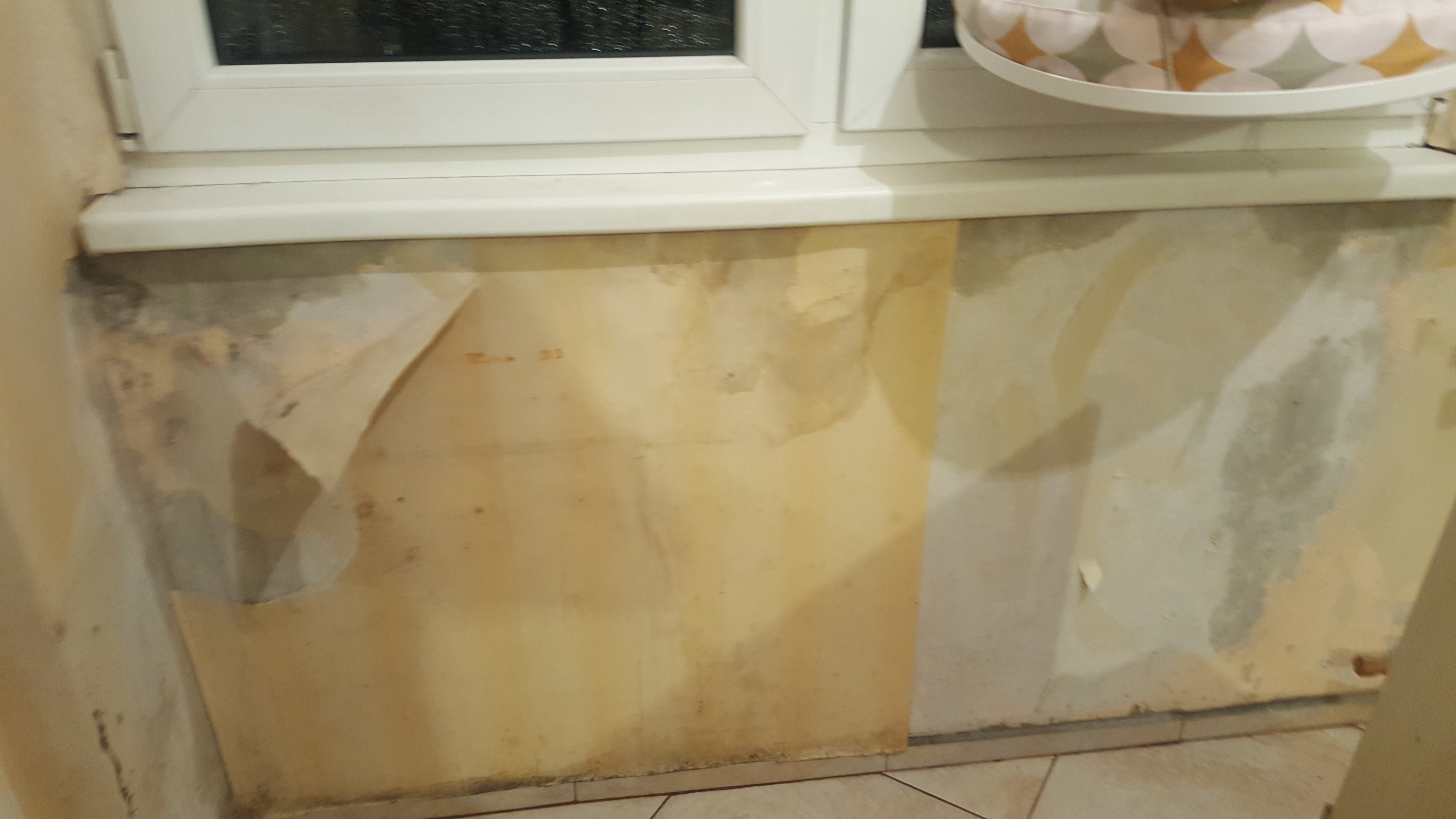 1.от тавана. Жилището е на последен жилищен етаж и се оказа, че прозорците на таванските стаи са протекли и отгоре има локви, които са избили при нас. Мисля да ги почистя и мина със UV устойчив силикон