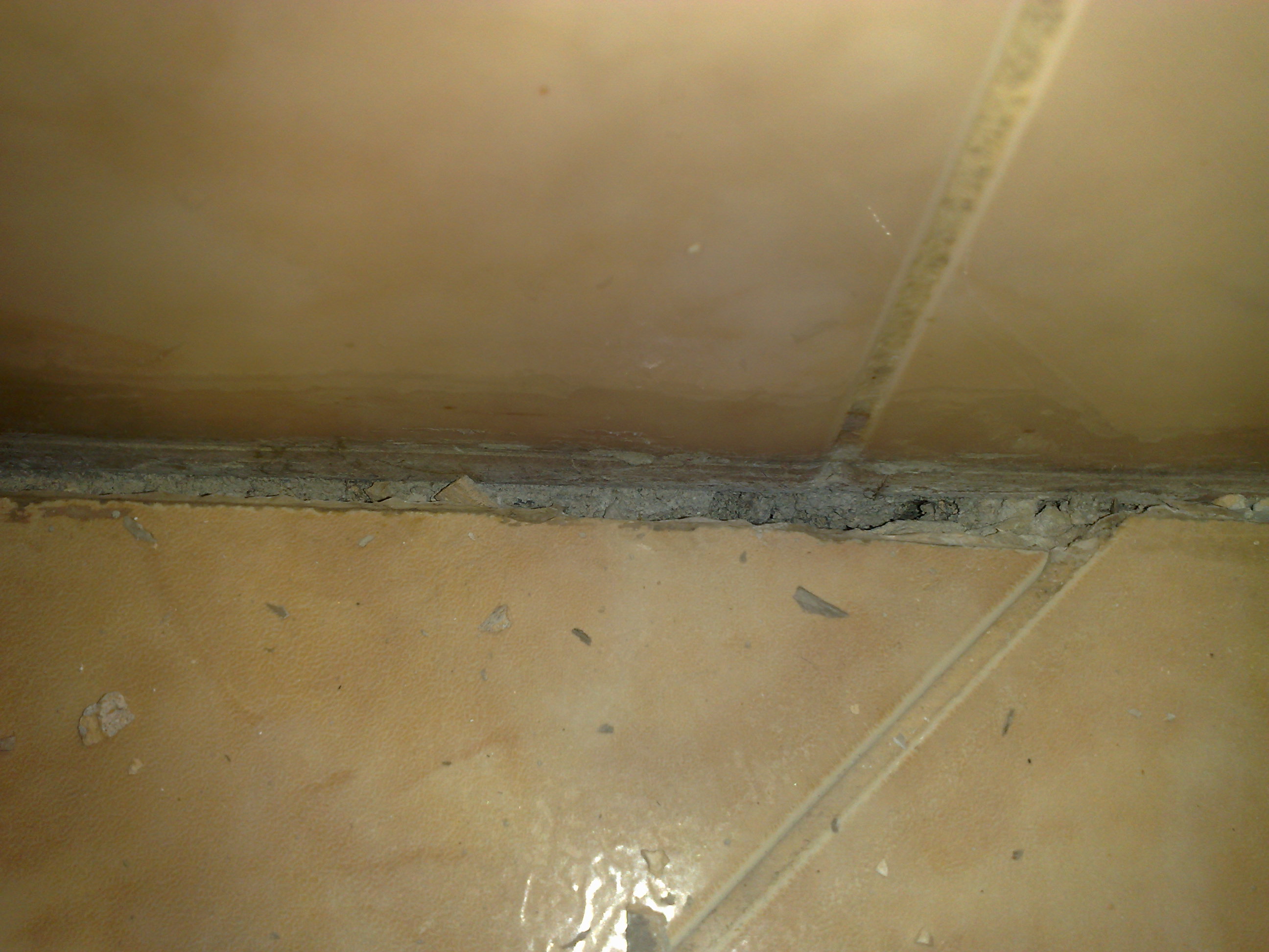 Ето за какво става дума, стените на банята се "отлепят" от дъното и , на места отзява по 1 см. , което си е проблем. Отделно наклона на банята определено не е към сифона...но това е друга тема. Прилагам снимки за да стане по-ясно.