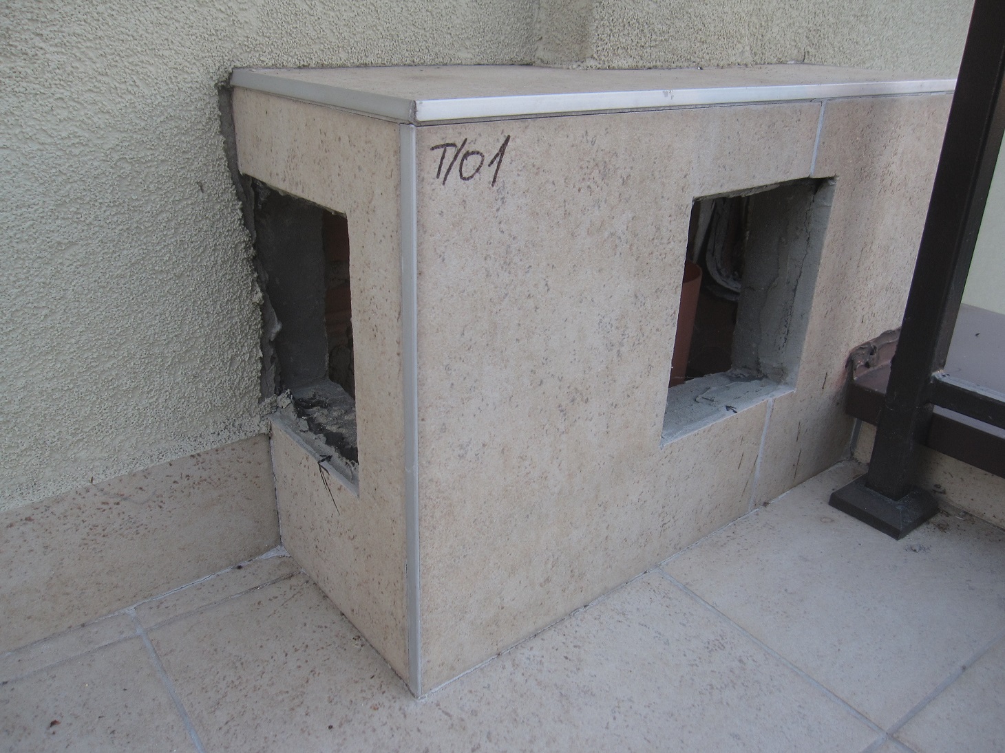 Тръбите на отдушниците на сградата (фи 110), в която живея, излизат на покрива и около тях са оформени нещо като комински тела (КТ) от газобетон (вижте снимките), които отвън са обмазани с хидроизолация (ХИ) и облепени с гранитогрес. За съжаление при дъжд и вятър вътре в КТ навлиза вода, която стига чак до помещенията, от които излизат отдушниците. Реших да затворя въпросните КТ с метални жалузийни решетки, но си мисля няма ли да е добре преди това да положа ХИ вътре в самото коминско тяло - между тръбата на отдушника и вътрешната повърхност на газобетона? За съжаление мястото не е удобно за нанасяне на ХИ с четка, както беше направено от външната страна. Гледах ремонт на баня, където майсторът направи рядък циментов разтвор с водно стъкло (ВС) и след това го изля по един импровизиран улей ниско долу до пода около една от каналните тръби (също фи 110) до която достъпът беше силно ограничен, както в моя случай. За съжаление той така и не можа да ми обясни в какво съотношение сложи водното стъкло към циментовия разтвор.