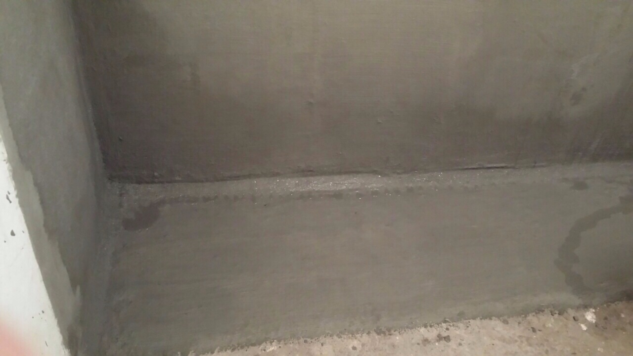 разкъртих мазилката под трабата и замазах с бърз цимент. След това три ръце Aquamat. Теча под тръбата спря, но изби на други места по стената ( малки капчици като от потни жлези)