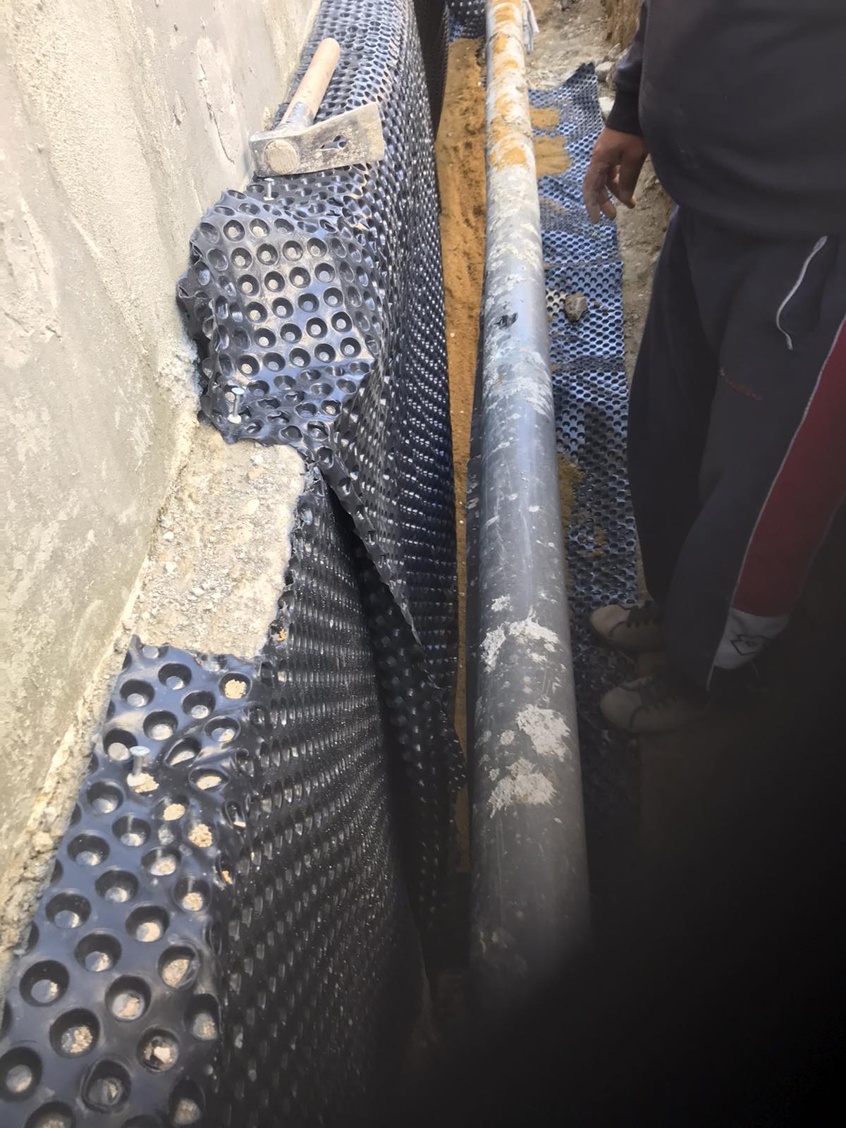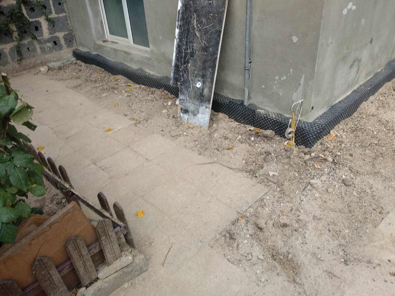Иваче така по картинката може да залепиш хидроизолация - 30 см по стените и в-у копчестата мембрана докато влезе в земята. Колкото по-дълбоко, толкова по-добре.