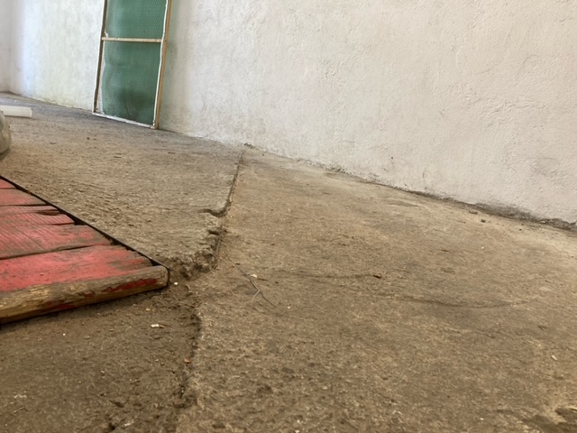 2. Неравен под - Генералната идея за завършен вид е подът да бъде облепен с плочки. В случая подът в целия гараж е с неравен наклон и участък с вдлъбнатина 3-4 см надолу. Решението за това предполагам, че може да бъде: