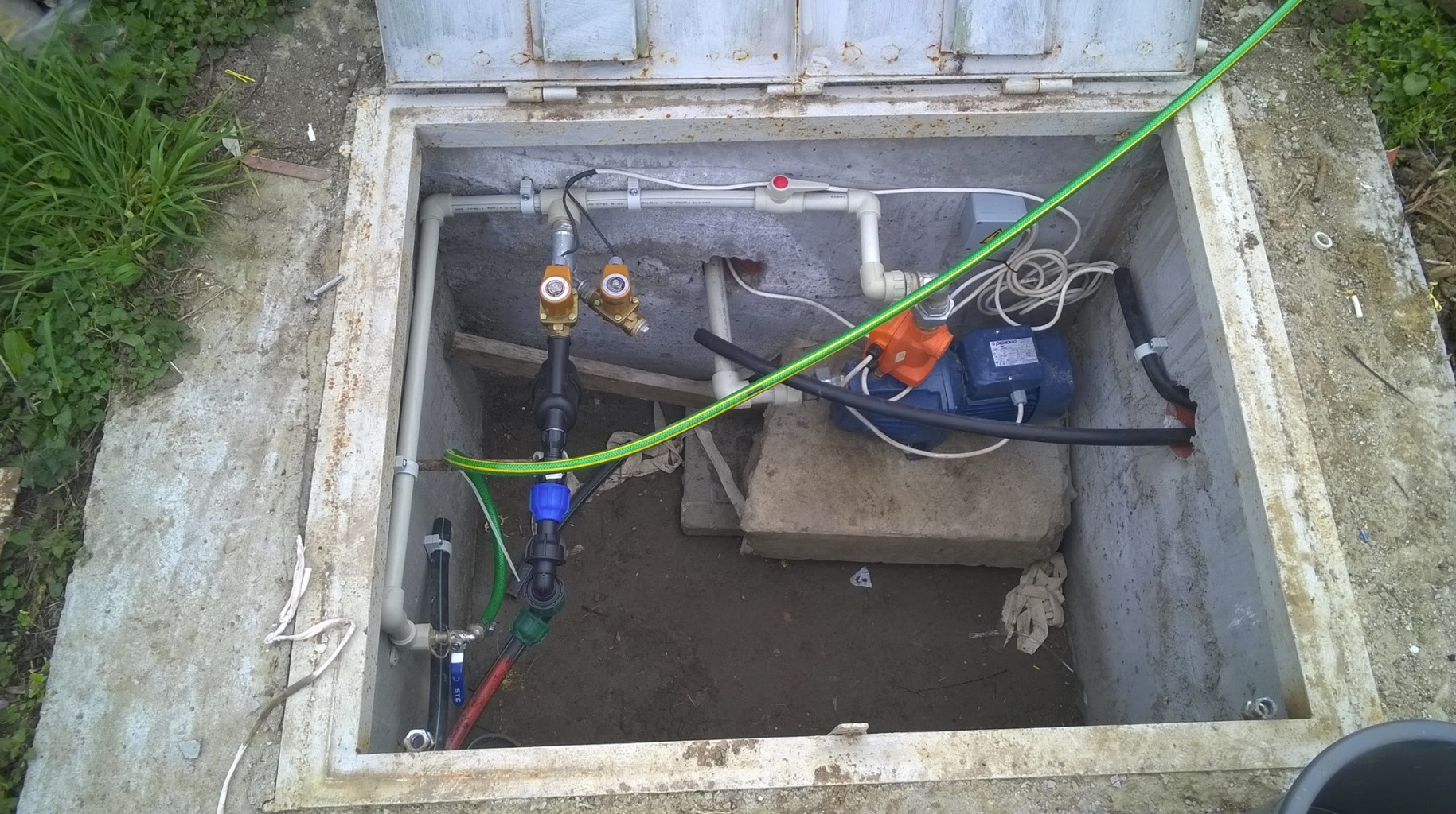 Презастраховах се и от към смукателя сложих и поплавък да изключи помпата ако падне нивото под зададеното и да не остане въздух, нищо че помпата си има защита от въздух и спира ако свърши водата, но не исках да остава на сухо смукателя.
