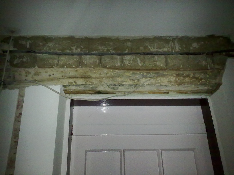 Здравейте. Наложи ми се да прекарам някой и друг кабел и съответно да поизкъртя малко от старата мазилка, при което установих че в един участък над вратата / може да го видите на снимиите/, същата се е отлепила, и съответно я свалих в тая и част.