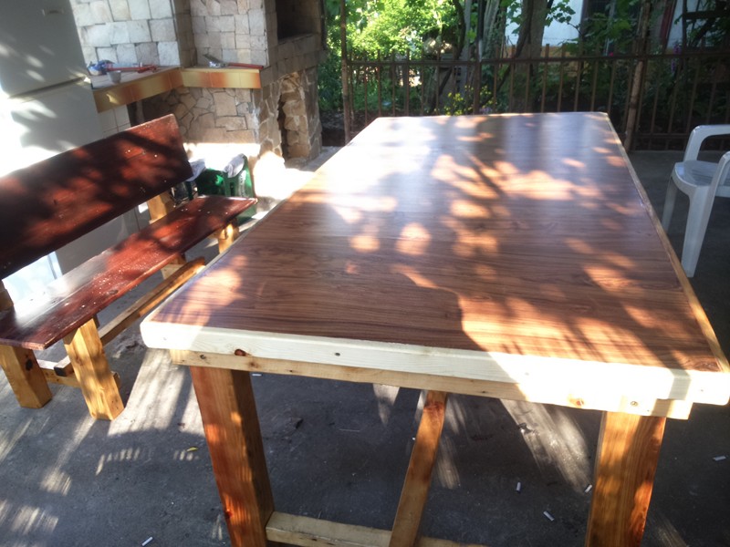 Масичката е в експлоатация, с дървен плот от груба дъска. Ламината ми е излишен. Труда ще е около час, между другото. Ама ще има фаца цяло лято :-D , другото - пак :shock: :-D :partyman: :partyman: