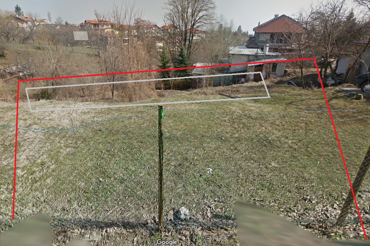 В червено е парцела а в сиво трябва да е подпорната стена.