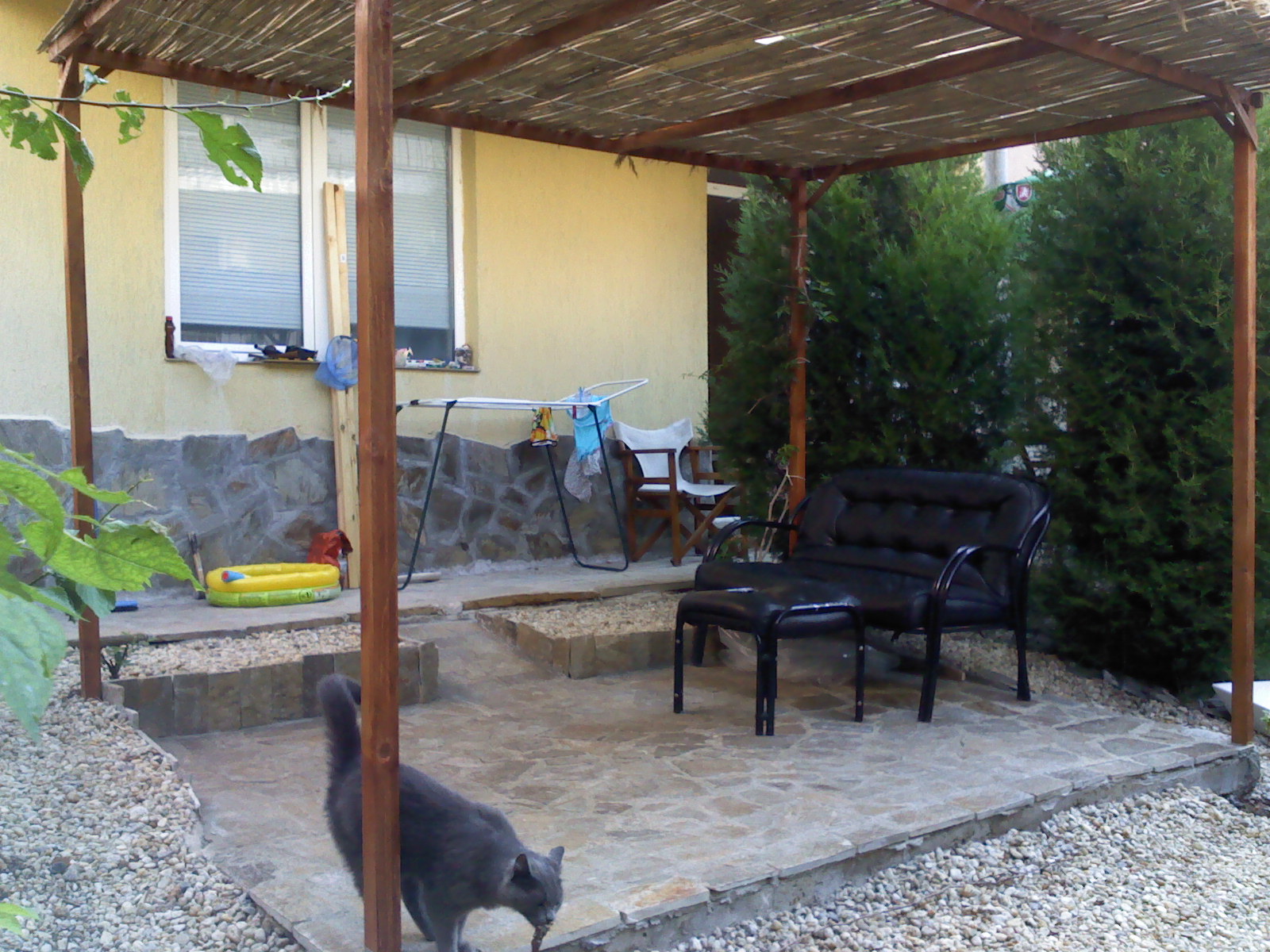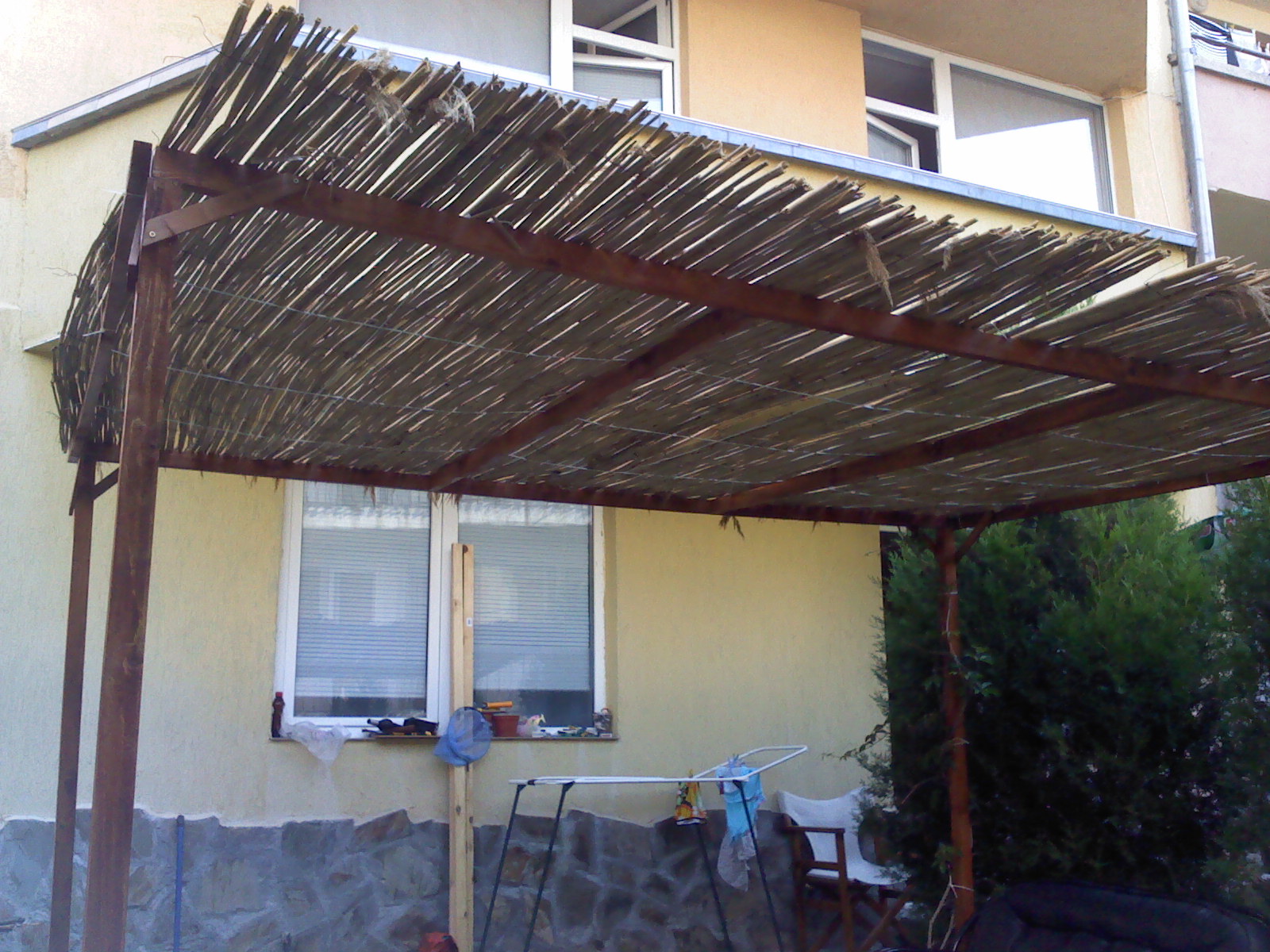 Засега ще му метна отгоре рогозка, пък живот и здраве асмичките и храсталаците след някоя си година ще направят хубава сянка.