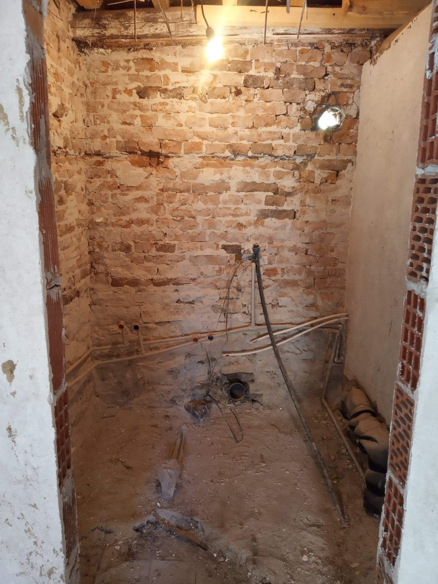След два дни рязане на храсти и косене, дойде ред да продължим с къщата. Днес успяхме да изкъртим банята до тухла, част от едната стена на кухнята и касата на едната врата.