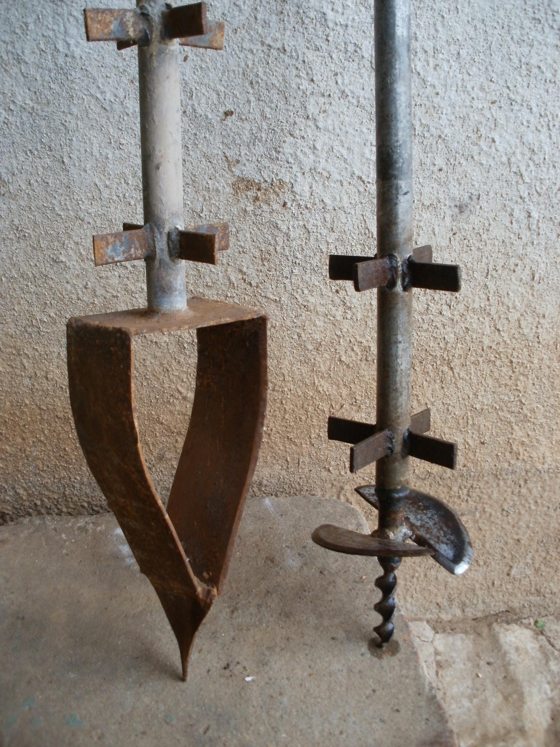 Свредла.JPG Върху кръстачките се надява тръба, за да събира повече почва.
