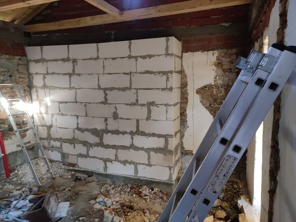 Стената в дъното вече е с прави ъгли, в нишата ще монтирам камина.
