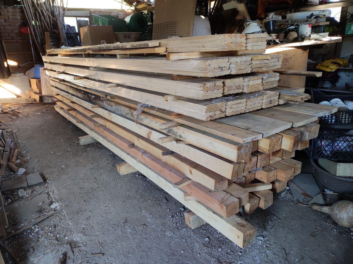 Успях да купя дюшеме 2 см., широко 15 см. То е за тавана - напролет. И 36 греди 8Х10 см. на 4 метра.