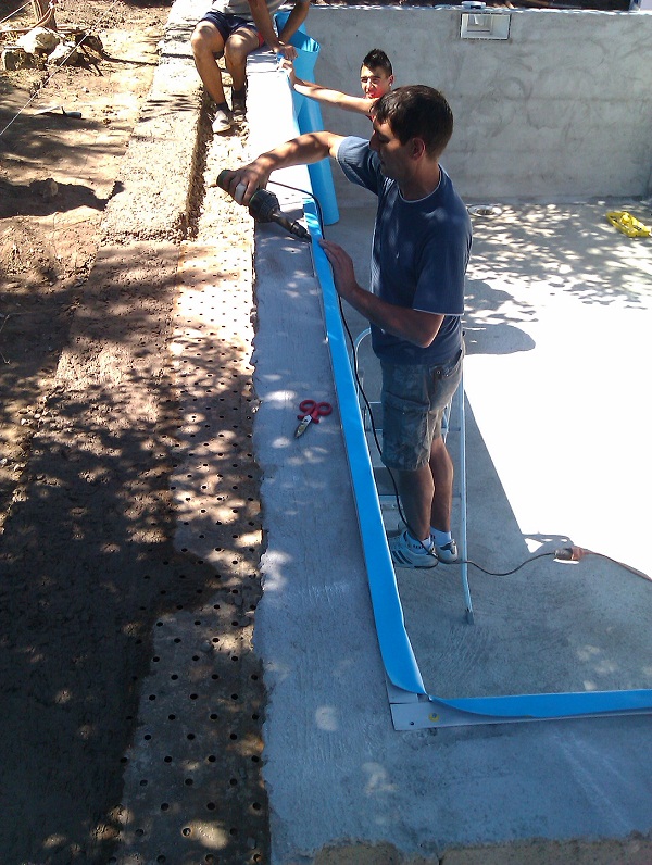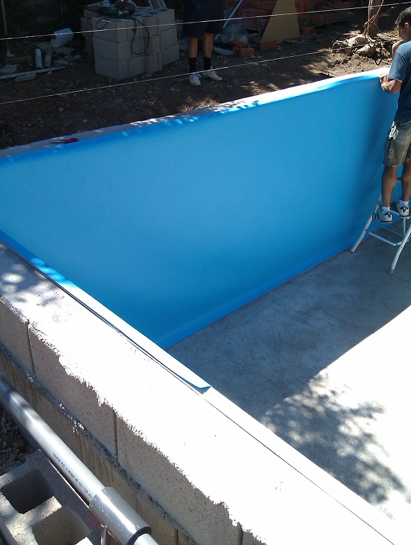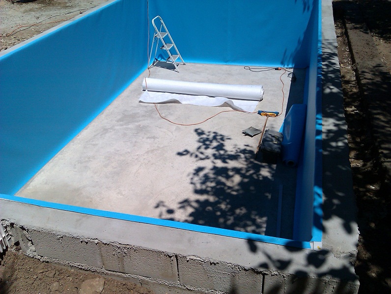 Лепят ли го с нещо и как. Тук фолиото за басейните ти го доставят залепено стени и под