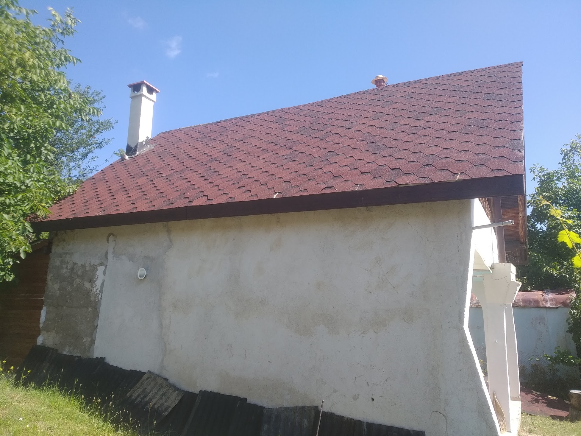 Имаха много симпатичен модел битумни керемиди, които изглеждаха добре. Абстрахирай се от цялата кривина, вече я няма
