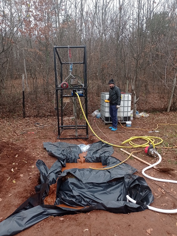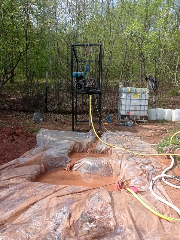 сондиране. Вчера изкопах ямите за водата. Качих един бидон 1000 литра, защото ще ми е нужна вода