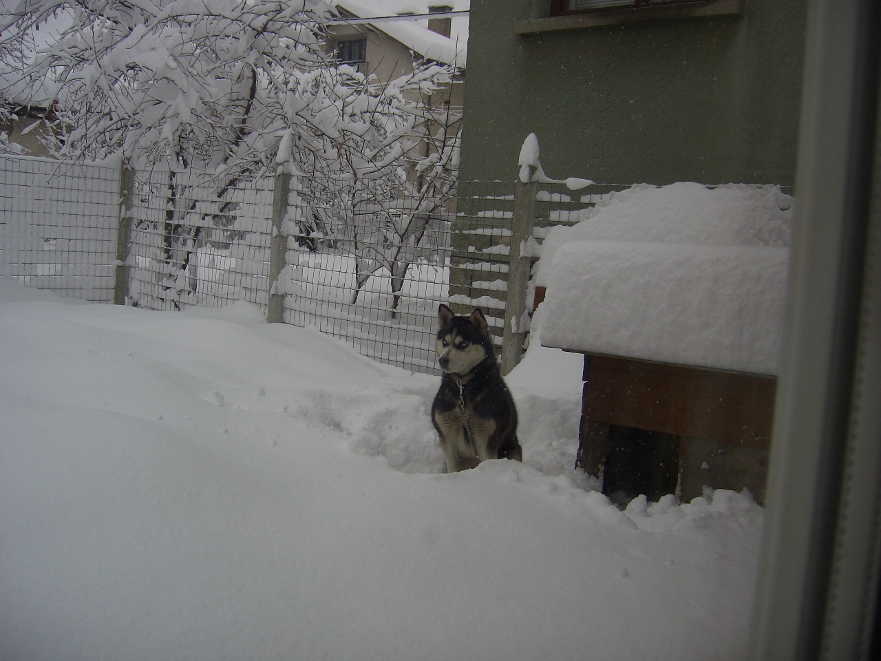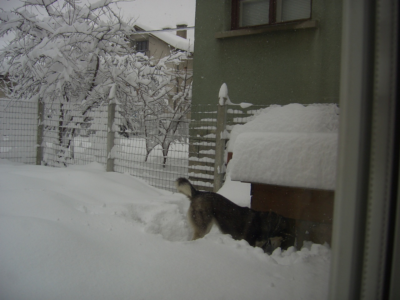 Къщата му е с 5 см. стиропор от вън и 3 см. фибран на пода, а самият под е направен от палет. Дзверо не иска да стой вътре освен ако не затворя вратата на ограждението което съм направил, но така като го затворя пак оставам без пазач. Най предпочита да спи в цветята между розите.