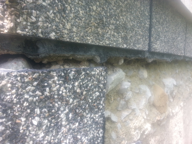 Здравейте, миналата година правихме ремонт и при уж временното преместване на водостоците се е получило някакво водно течение към балкона/терасата. Това пак уж сме го отстранили. Но въпроса е сега как да го оправя. Прикачил съм снимки. Един приятел вика да лепя плочки върху музайката. това добре, ама големите пукнатини?? Да не говорим за мазилката от външната страна.. Там какво да правя?