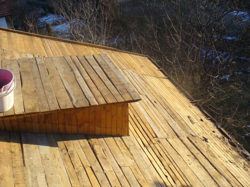 Вилата е строена началото на 80-те години, за покрива са ползвани здрави дебели хоризонтални греди, а за наклонените е ползвано каквото има като дървен материал. Тънки криви, имам чувството че са сечени направо в гората и са сложени. Керамидите са обикновенни керамични. Таванският етаж е обкован от вътре върху тези греди с ламперя и в последствие преди няколко години ги облицовах с гипсокартон. не съм махал ламперята защото отгоре върху нея е страшен боклук. Сега гледам че покрива е почнал да се изкривява, не е напълно прав, а на места като пчели са пропаднали керамидите.
