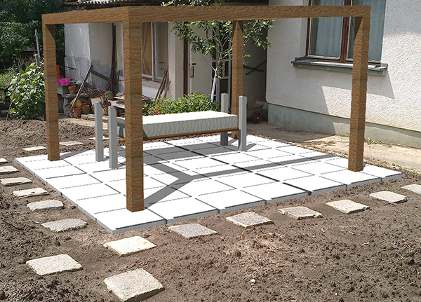 Аз бих ти предложил,вместо гуми и т.н. да вземеш едно кошче,което да ползваш за отливането на подложките за гредите.След като го обърнеш-по едно желязо в средата на отливката и дупка на гредата-няма мърдане.