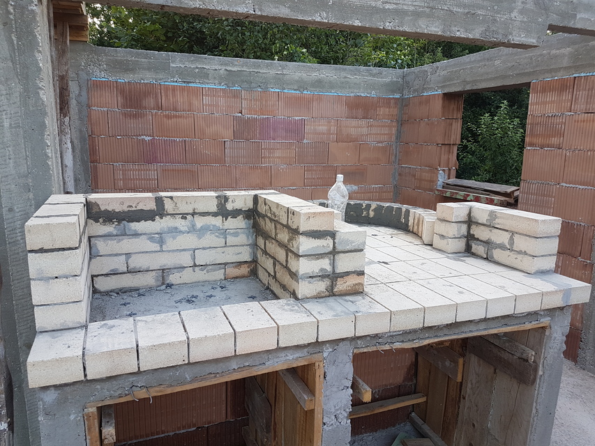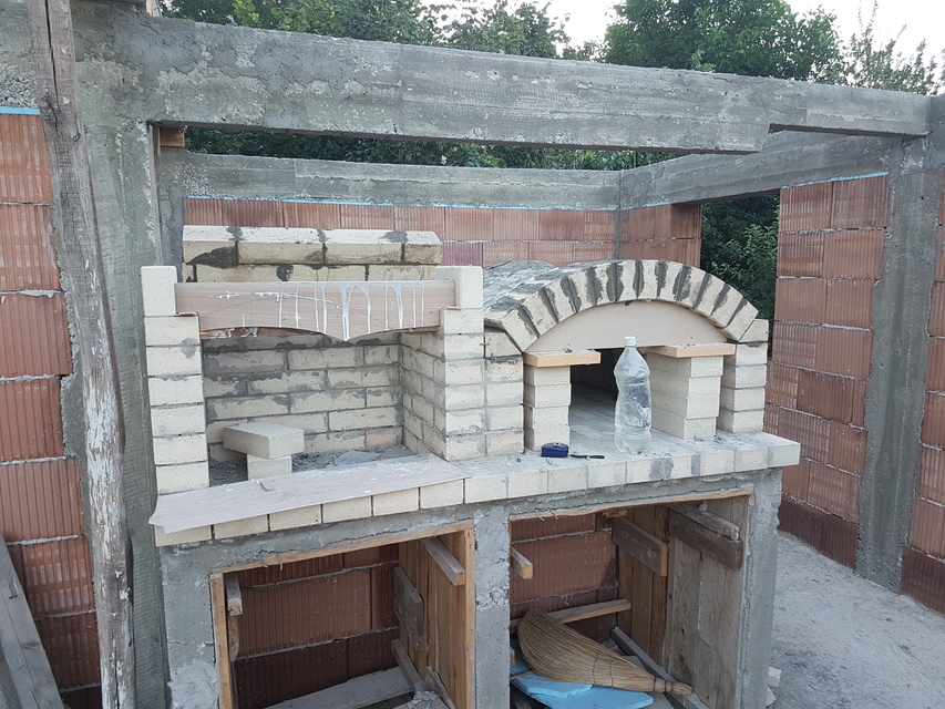 Понеже не получих никакви корекции на това, което съм замислил, а и не можах да си намеря майстор, който да го направи реших да го свърша сам. За да съм напълно честен, не съм го зидал аз. В нашето село има един много добър майстор, който обаче никога не еправил барбекю или пещ. Затова аз се нагърбих и бях по скоро като технически ръководител на проекта :))))
