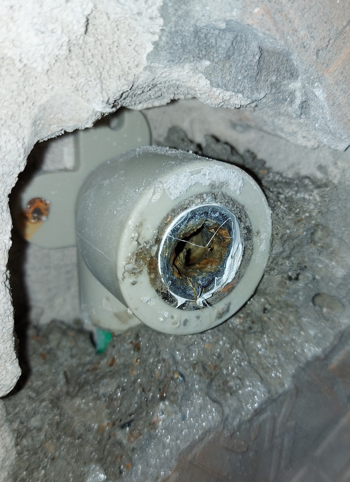 Така. Ето как протекоха нещата. При опит да се отвие удължителя той се счупи и резбата му остана във вложката.