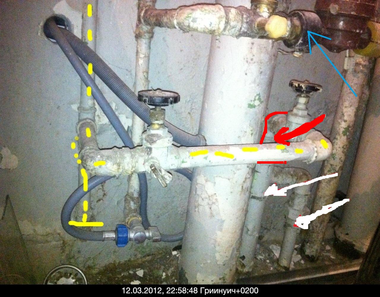 Трябва да се отреже и затапи топлата и рециркулацията.Смяна напоцинк..ръжд с ППР.Вързването на пералнята към канала е отвратително.