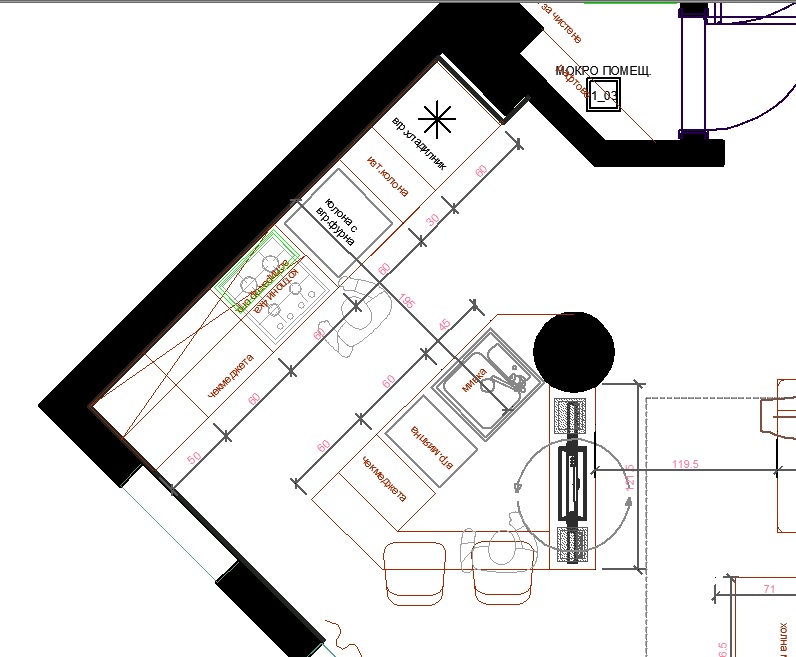 Правиме жилище и майстори в момента работят по промяна на ВиК и електро. Имам следното питане и моля за помощ: решихме да направим остров с мивка и не сме сигурни дали е възможно. Въпросът е дали може да се изкарат изводите до острова (разстоянието от стената до там, където трябва да бъде мивката е около 2 м.), като височината на замазката ще е около 10 см? Прилагам снимка както и план от архитект, така че да се добие представа за желания резултат. Много благодаря предварително за помощта