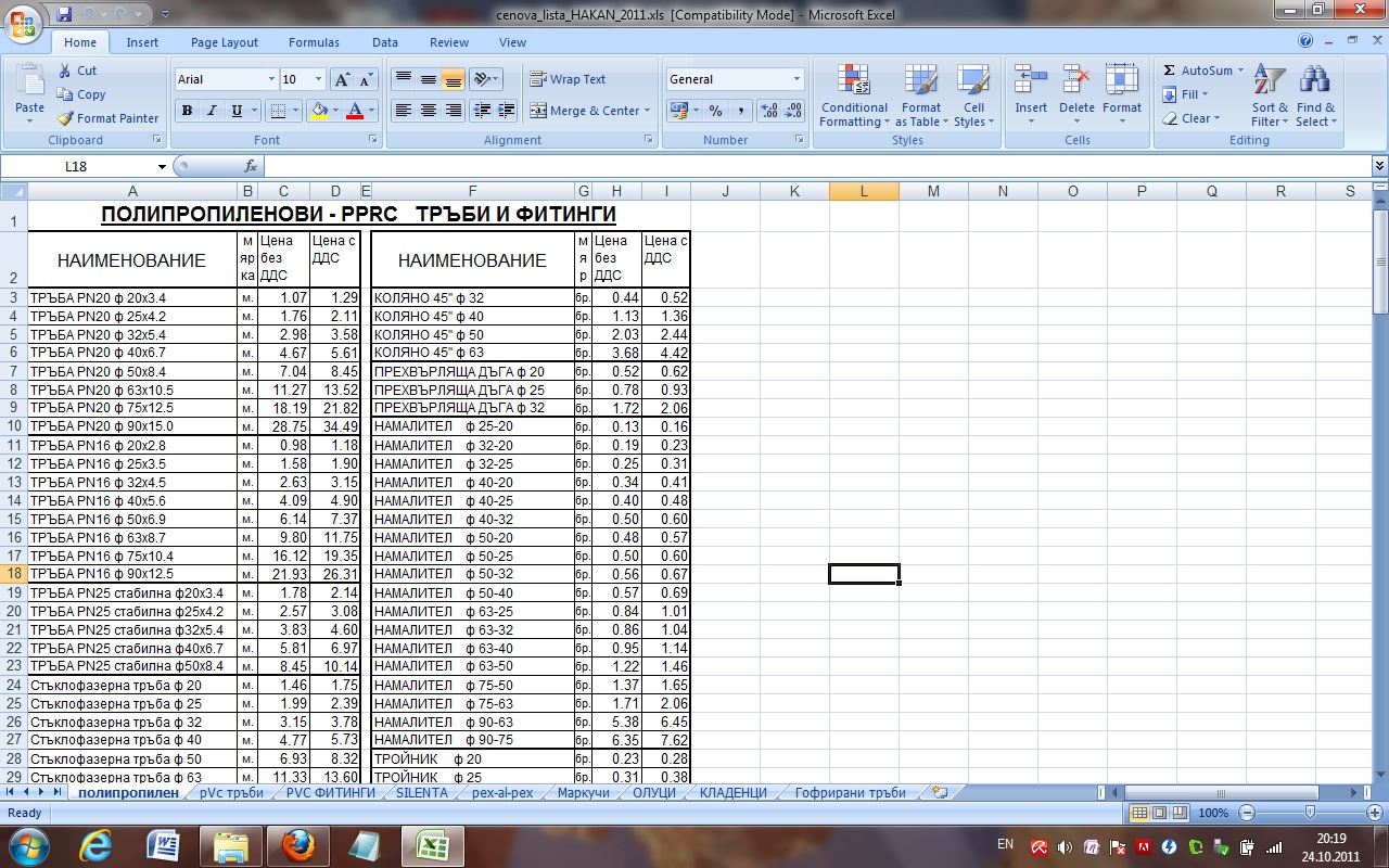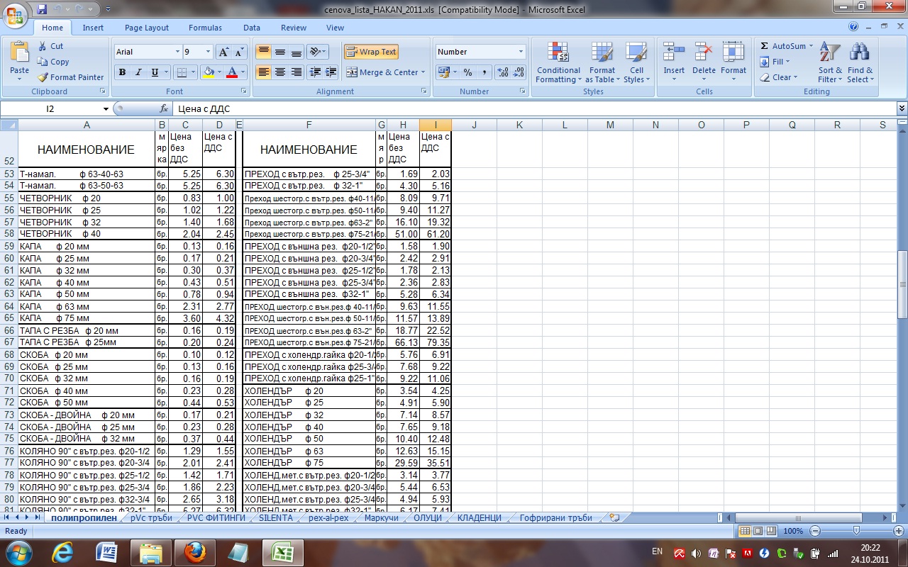огромен ръст на цените на полипропиленовите тръби, със по 34%, 35%, 39% (маркираните с жълто). Това е от "Енбра българия"-вносител на "Екоplastik".