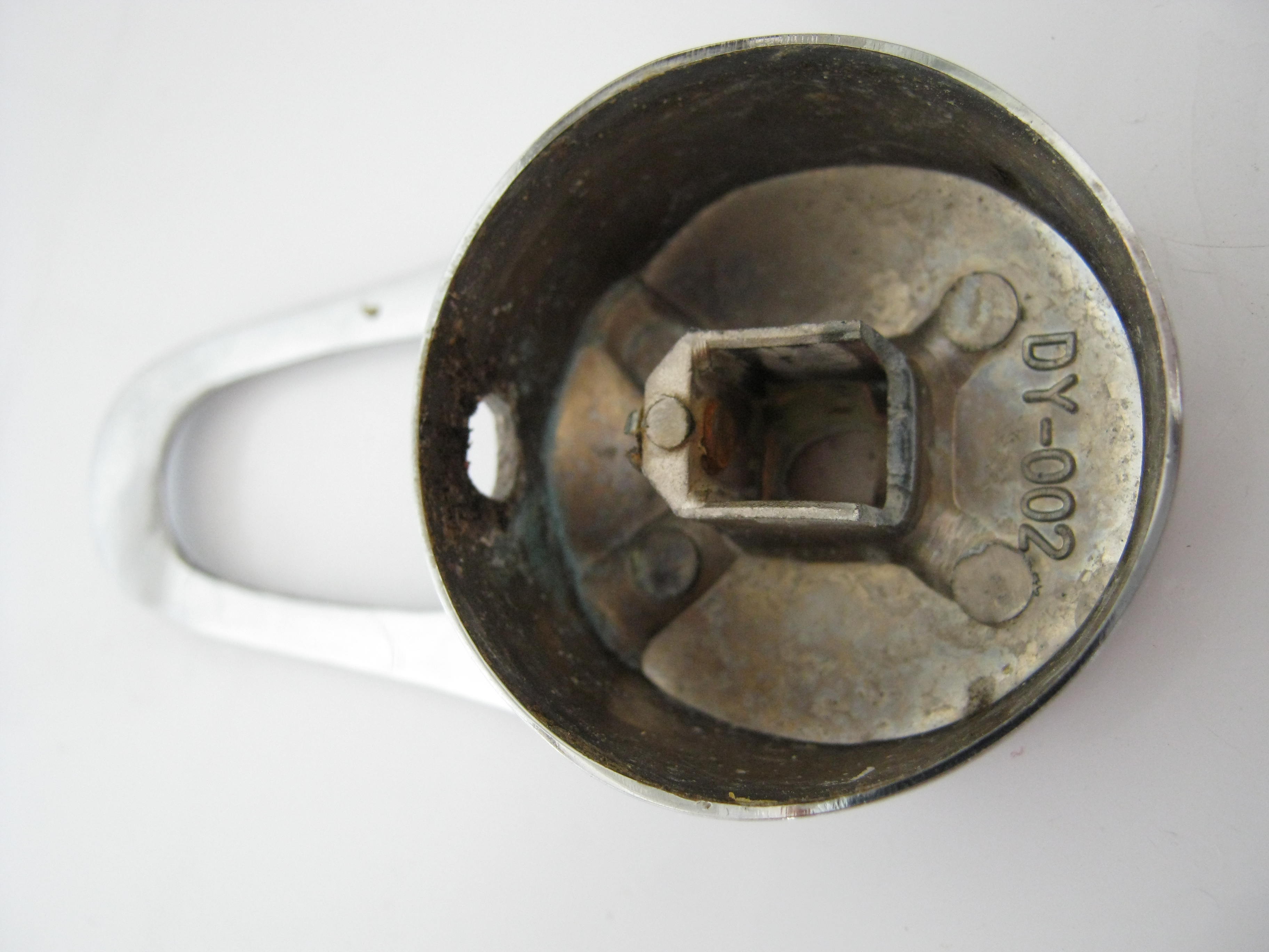 WD-40 e почти прфектният вариант. Гледам,че е от евтините китайски с желязна гайка, ако не стане направо хвърляй старата и си вземи нова. Малко по-хубава от тази си взех за 18 лв. Патронче сменях скоро на едната е 1,30 лв. Дръжка не съм виждал да се продава, ама и на тази май нишо и няма.