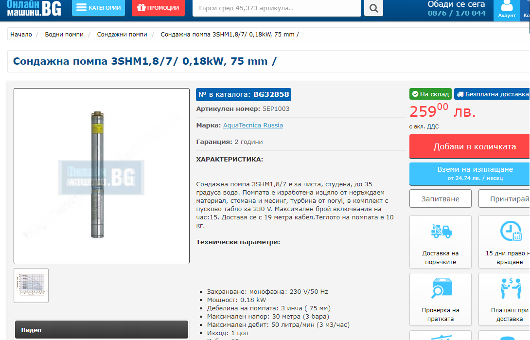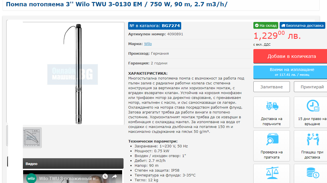 Мотива за избор на тази помпа пред много други е именно обявената ниска мощност.