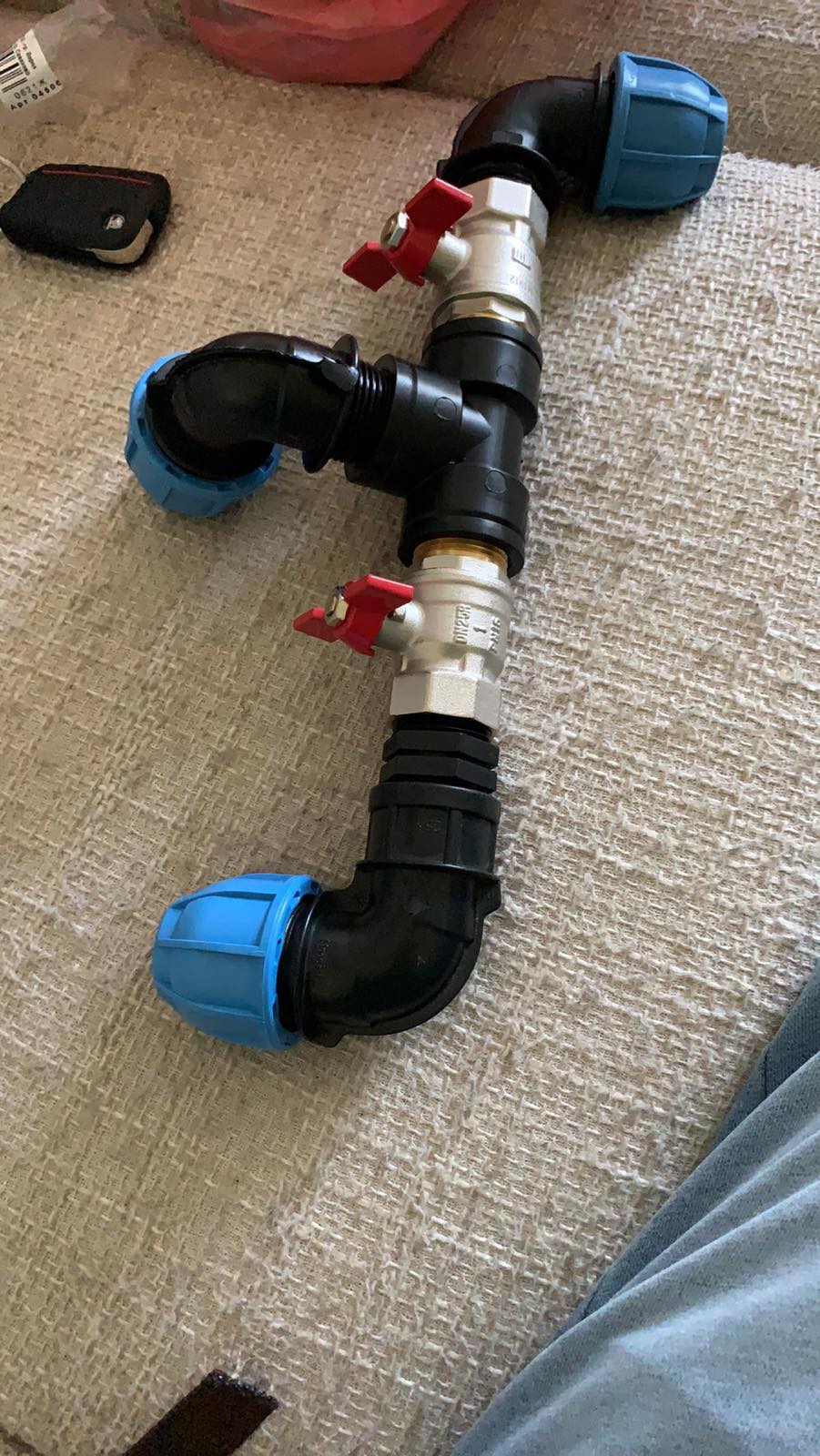 Задачата е да направя разклонение от входящата водопроводна тръба която е ПЕ (черните) ф25.