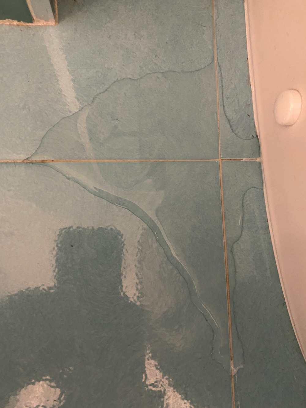 Сега обаче се появява една локвичка. По всичко изглежда, че тръгва от фугата на плочките, под капачката на снимката. Душа е от другата страна, на прилично разстояние. Това се случва на две или три серии - примерно 5-6 дни образува това (аз забърсвам по два-три пъти дневно), след това няколко дни го няма, и после пак се появи. Няма промяна в експлоатацията на моноблока.