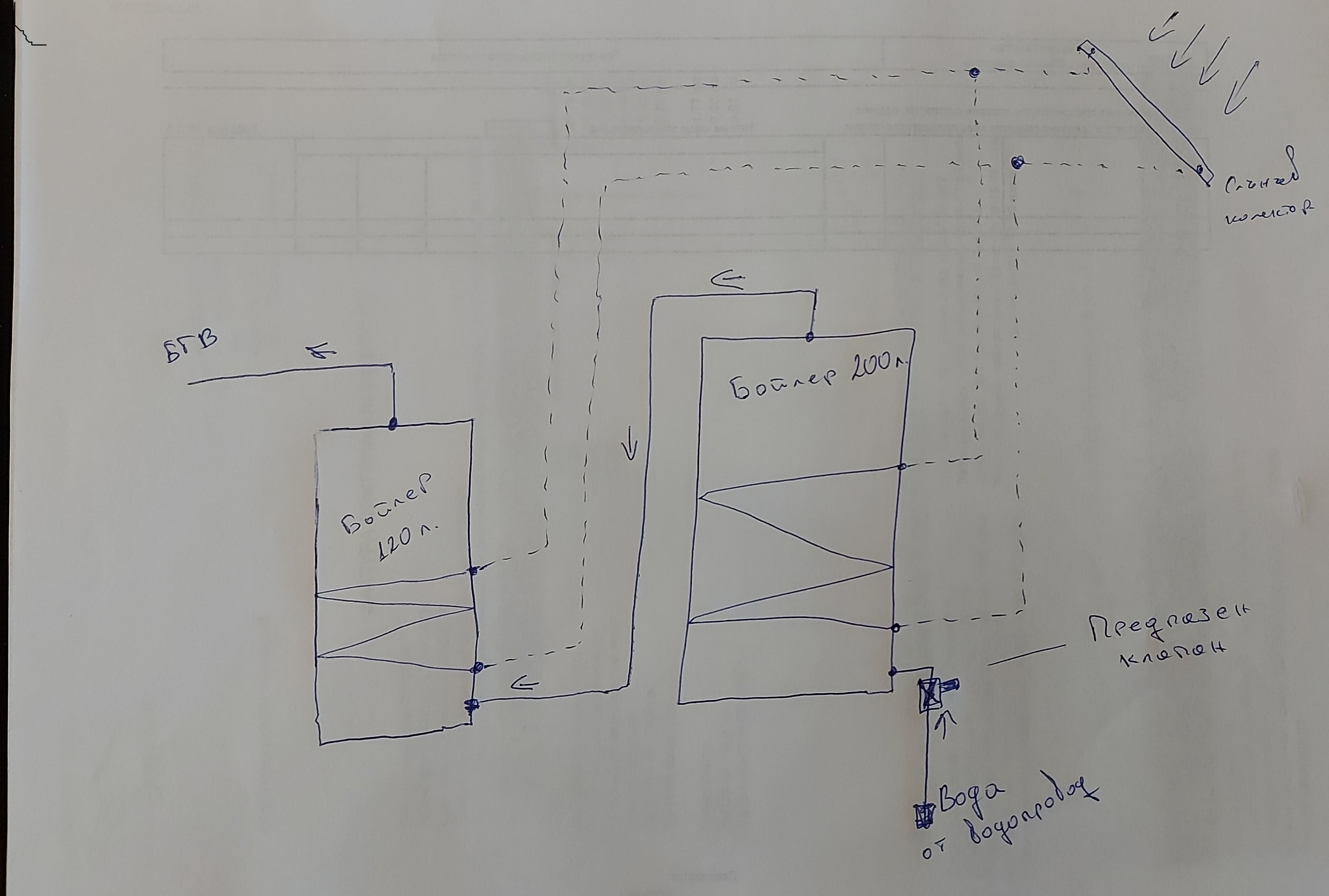 Имам свързани два бойлера последователно. Първия е 200 литра и на него има поставен предпазен клапан на студената вода. От него излизащата вода влиза в 120 литровия. Питането ми е на втория (120л) необходимоли е да се поставя предпазен клапан. Идеята когато се правиха беше следната: Първия (120л) е с нагревател и серпентината която се нагрява от слънчевите панели, втория (200л) има серпентина която също се обслужва от слънчевите панели (слънчевите панели са на отделни помпени групи с приоритет малкия бойлер). По този начин винаги има топла вода в малкия бойлер. Питането ми е дали е необходимо поставянето на възвратен клапан на малкия бойлер, защото той се слага на студената вода а на практика в малкия бойлер винаги влиза топла вода.