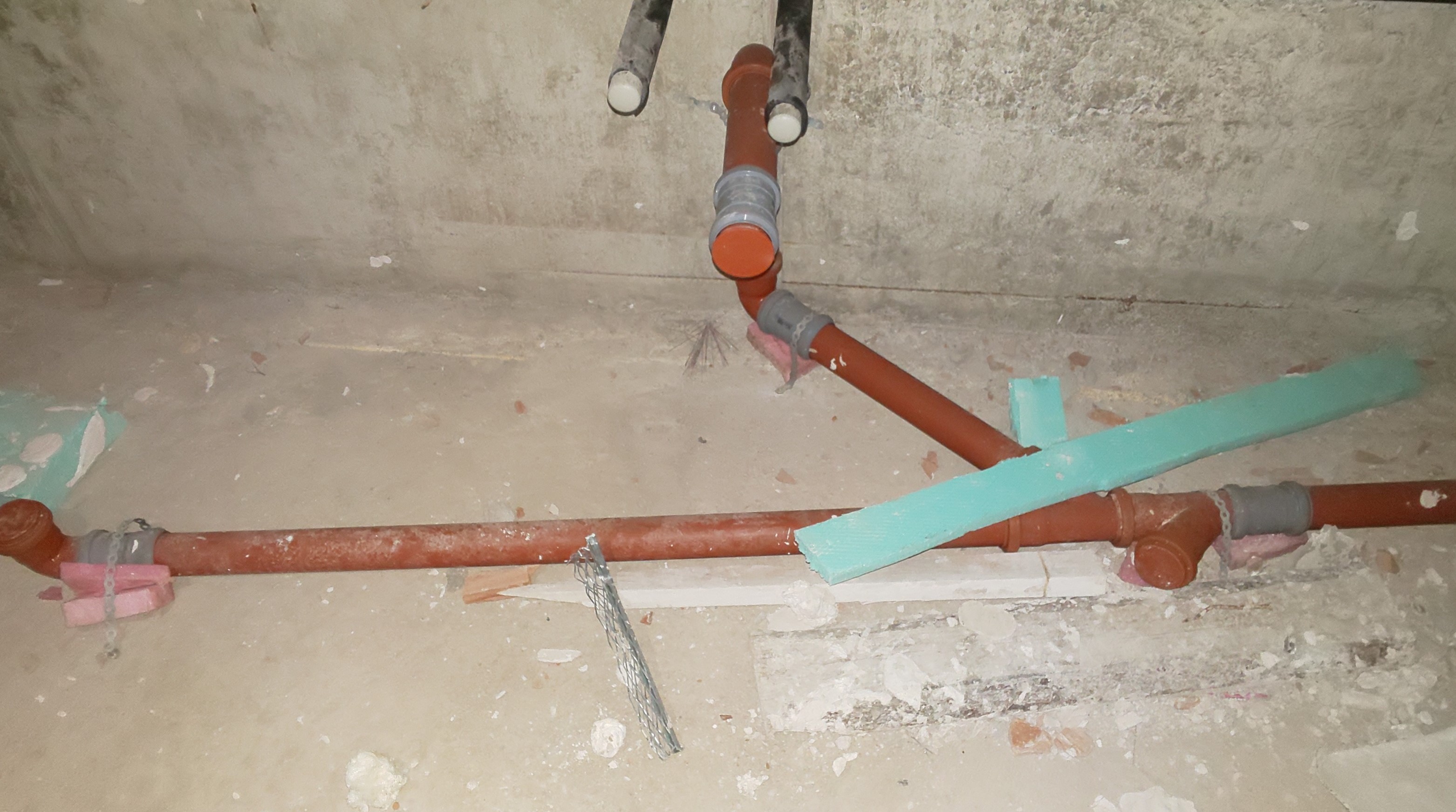 Според вас нормално ли е изпълнена тази вътрешна канализация? Притесняват ме сивите муфи, доколкото разбирам са плаващи/подвижни такива с гумено уплътнение, но доколко са надеждни и има ли риск от протичане в бъдеще? Защо изобщо е направено по този начин?