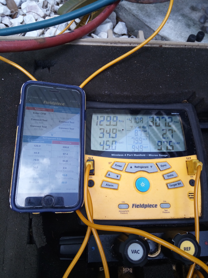 Вътрешният кръг ни е на 10 градуса целзий , пропускаме през външният толкова голям поток , че водата на изхода на машината излиза на 25 , имаме температура на кондензация 30 и температура на прегретите пари , излизащи от компресора до 45 градуса .