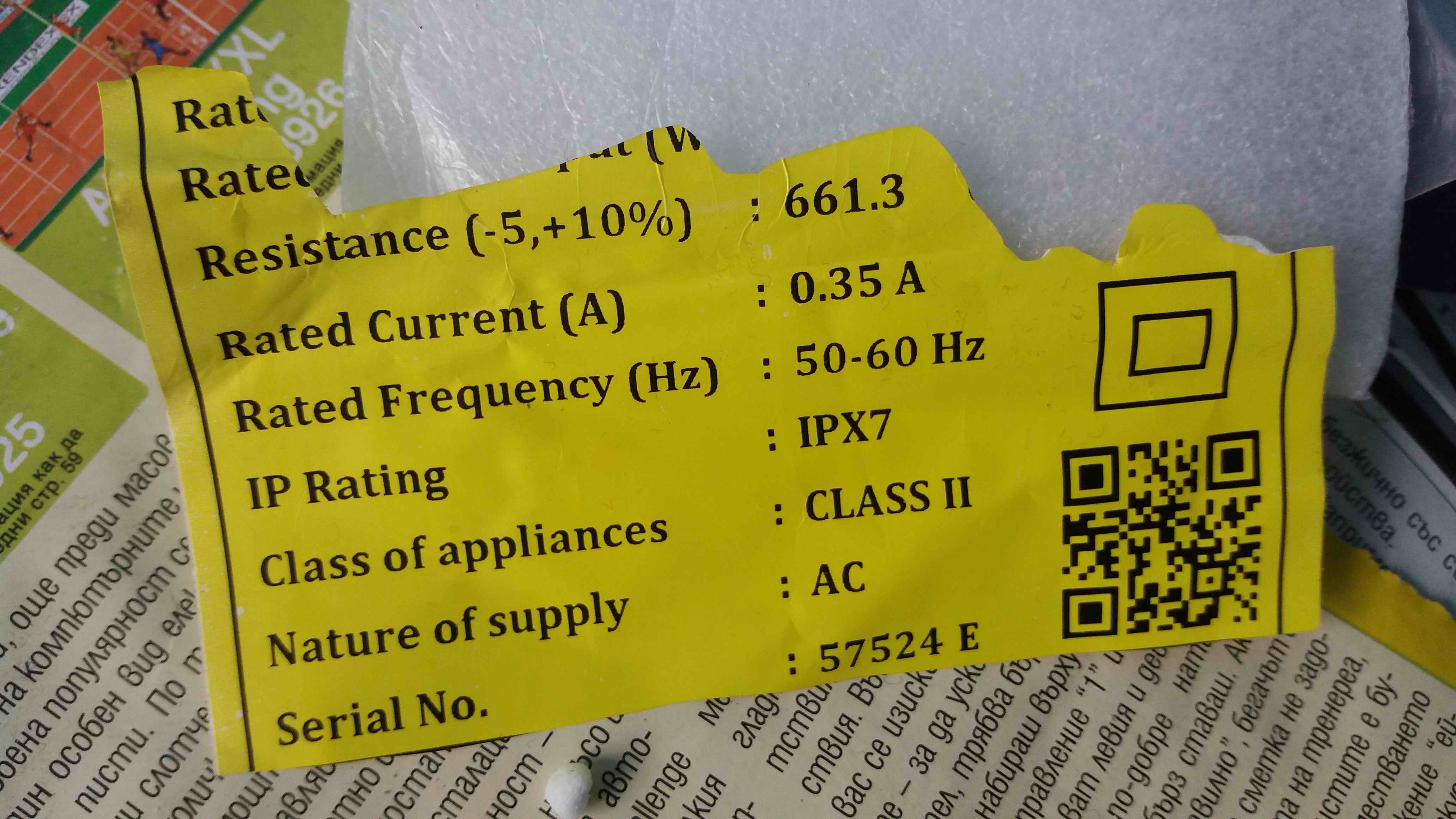 Може да е етикет на нагревателя... може и да не е. Не мога да твърдя нищо. Но етикета е у мен.