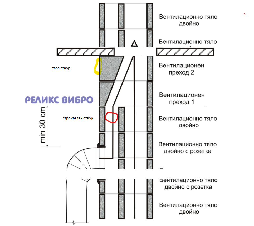 Верно е, че според схемите, коминните тела на ниските етажи са по-малки. Това го беше казал и Jacomo, ама кой да чете?! На четвъртия етаж коминнито тяло е означено върху схемата с два отвора: 15/20 + 20/20 , а на осмия етаж - с три отвора: 15/20 + 20/20 + 20/20.